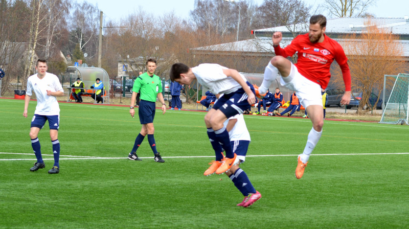 Liepājas futbola komanda "1625 Liepāja" sestdien, 5. aprīlī, Liepājas stadiona "Daugava" rezerves laukumā "Syform" Latvijas futbola čempionāta pirmās līgas pirmajā kārtā ar 2:1 (2:1) uzvarēja komandu "Tukums 2000 TSS".Mača sākumā liepājniekus vadībā izvirzīja Nauris Dobelis. Tukumniekiem izdevās rezultātu izlīdzināt, bet pirmā puslaika izskaņā "1625 Liepāja" futbolists Jevgenijs Golovins guva mājiniekiem uzvaras vārtus - 2:1.Foto: Aigars Prūsis