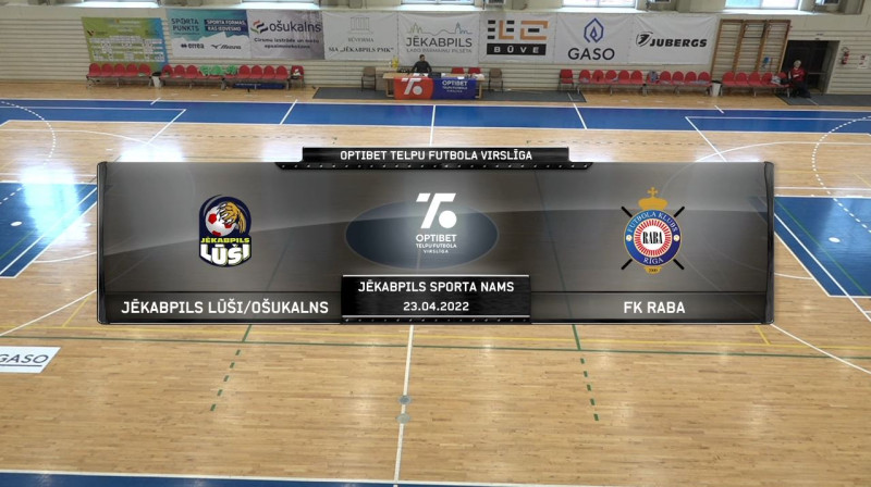 23.04.2022. Optibet telpu futbola virslīga. Pusfināla 4. spēle: Jēkabpils lūši/Ošukalns - FK Raba spēles ieraksts.