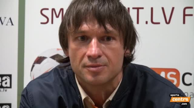 Pēcspēles preses konference pēc SMScredit.lv Latvijas futbola Virslīgas spēles starp Daugava Rīga un Jūrmala.