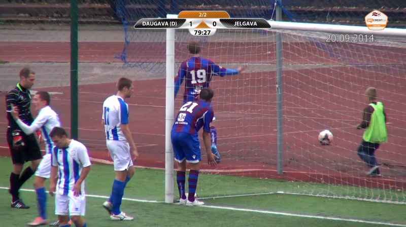 SMScredit.lv Virslīgas 30. kārtas atklāšanas spēlē Rīgas "Daugava" pārspēja ar 3:1 "Jūrmalas" vienību, tiesa, pašā mača izskaņā tiesnesis apšaubāmas aizmugures dēļ neieskaitīja "Jūrmalas" vārtus.