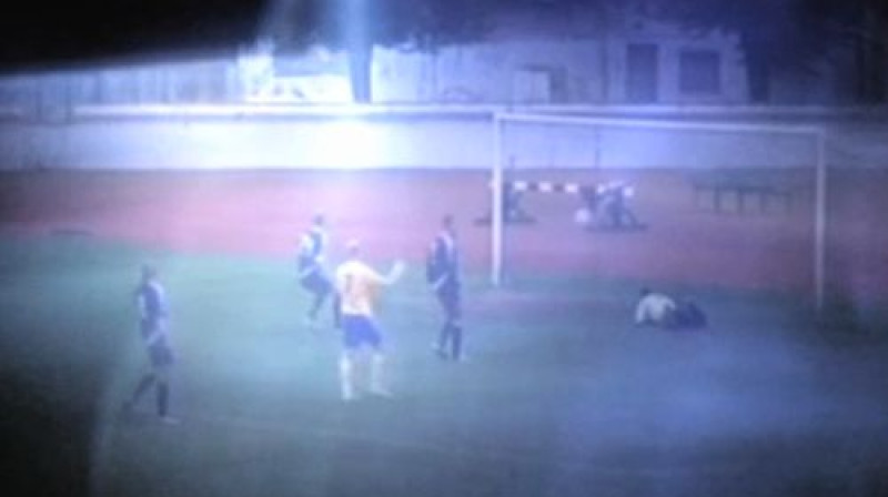 Fans izskrien laukumā un iesit vārtsargam pa seju