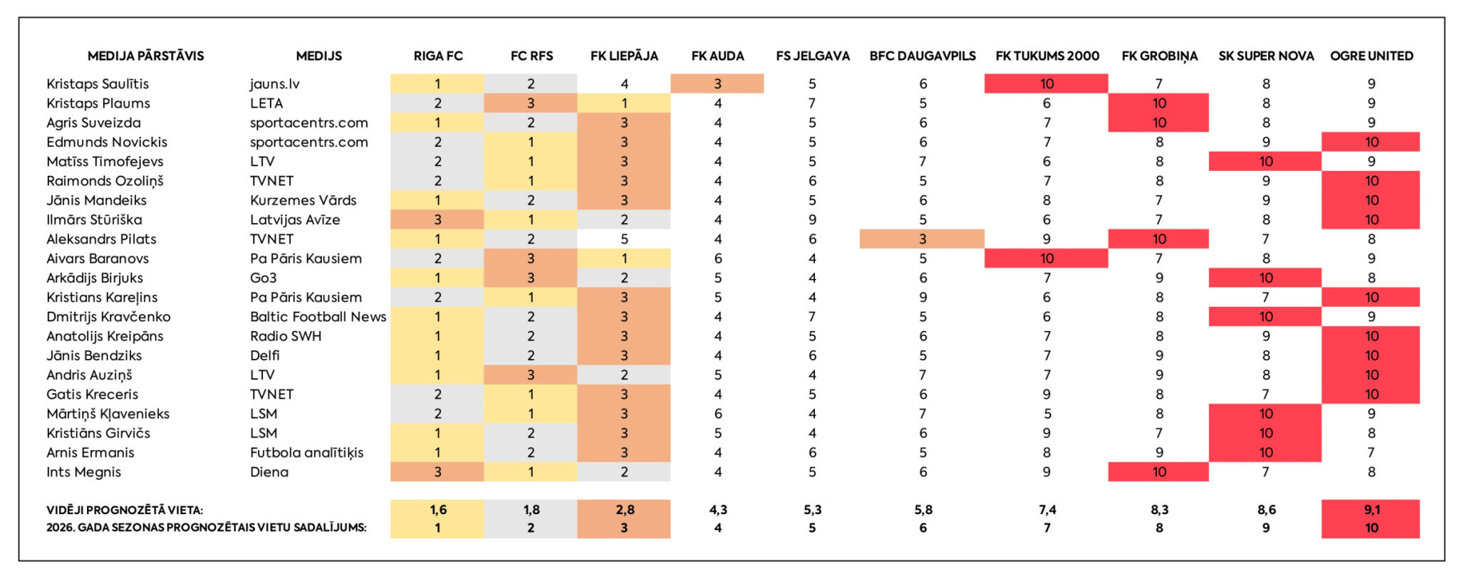 Latvijas sporta mediju pārstāvji tradicionāli pirms sezonas sākuma iesniedza savas prognozes ikgadējam mediju prognožu konkursam. Arī šosezon tendences būtiski nemainās – par galveno titula pretendenti tiek uzskatīta “Riga FC” komanda.