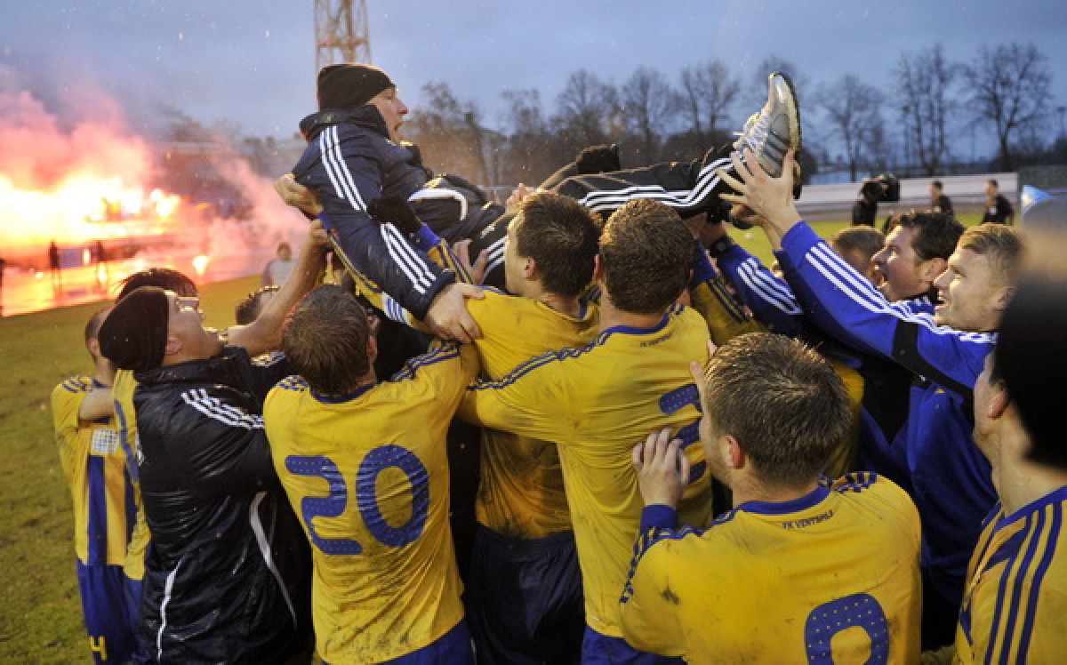 Šodien par Virslīgas čempioniem futbolā kļuva "Ventspils" futbolisti. Kurzemes komandai tas ir piektais Latvijas čempiones tituls kluba vēsturē. Foto: Romāns Kokšarovs, Sporta Avīze/F64.