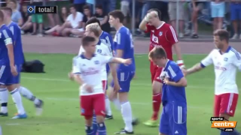 Divus vārtus HSV uzvarā guvis Artjoms Rudņevs, palīdzot sagraut ''Niendorfer TSV'' komandu - 6:0.