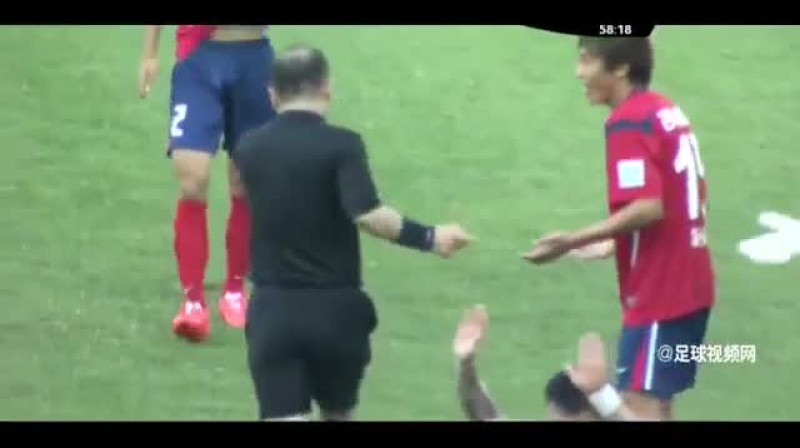 Ķīnas kausa mačā 23. jūlijā tikās "Yanbian Baekdu" un "Shanghai Shenhua" (1:2). Kādā no epizodēm Šanhajas pussargs Čao Jundins pēc saskares ar pretinieku noskrēja vairākus metrus un nokrita soda laukumā. Mača tiesnesis piešķīra 11 m soda sitienu (tas gan netika realizēts).Video: wang jinsong, youtube.com
