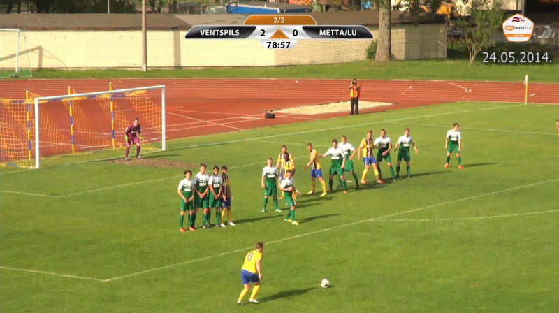Šodien SMScredit.lv Virslīgas 12. kārtas spēlē čempionvienība "Ventspils" savā laukumā ar 2:0 uzvarēja pastarīti "Mettu"/LU, izcīnot 12. uzvaru tikpat cīņās. Ventspilniekiem pirmie vārti jau 2. minūtē, kad pēc stūra sitiena izcēlās Kaspars Dubra, savukārt 2. puslaika vidū Vadims Jančuks ar lielisku sitienu intrigu likvidēja.