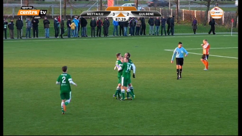 Šodien Rīgas Hanzas vidusskolas laukumā tika aizvadīta otrā pārspēle par tiesībām nākamgad spēlēt SMScredit.lv Virslīgā. Lai gan pirmajā puslaikā "Gulbenes" futbolisti izvirzījās vadībā ar 2:1, spēles turpinājums krietni sekmīgāks izvērtās "Mettai/LU", kura uzvarēja visā mačā ar 4:2 (divu spēļu summā 5:2). Trīs vārti Gata Kalniņa kontā.