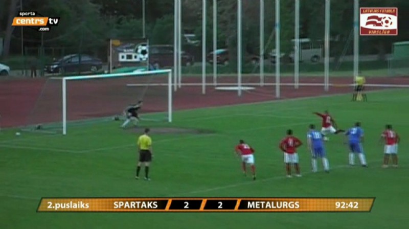 Kārtējais aizraujošais mačs šodien aizvadīts Slokas stadionā. Latvijas futbola Virslīgas 13. kārtas spēlē neizšķirti 2:2 spēlēja ''Spartaks'' un ''Liepājas Metalurgs''. Liepājnieki jau otrā puslaika ievadā nonāca mazākumā, bet mača kompensācijas laikā pendeli neiesita mājinieku uzbrucējs Moskera.