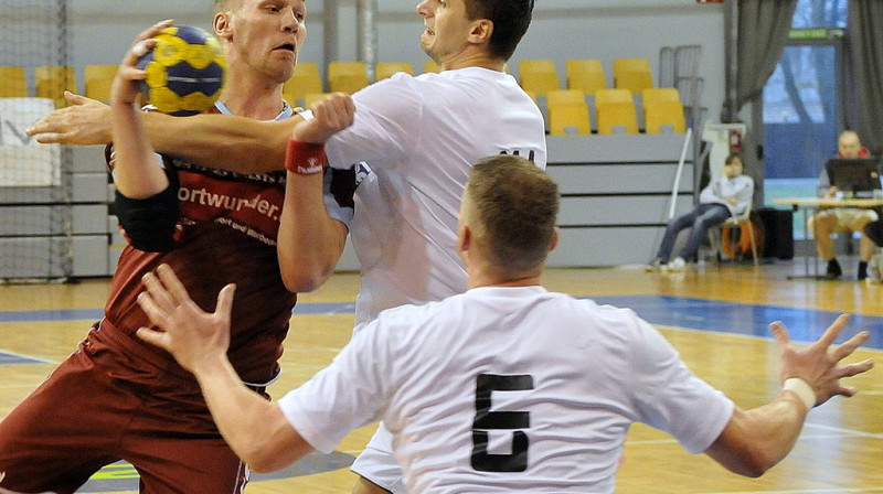 Piedāvājam Latvijas Handbola čempionāta vīriešu Virslīgas spēles starp HK ''Ogre" un "LAT-96" fotoapskatu. Spēlē ar 32:20 (16:10) uzvarēja ogrēnieši.Foto: Ritvars Raits