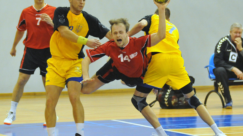 Latvijas handbola izlase Rīgas Domes kausa izcīņu, kurā piedalās četras komandas, sākusi ar zaudējumu pret Ukrainu - 23:30 (13:15). Rīt mūsējie tiksies ar Igauniju.Foto: Romualds Vambuts, Sportacentrs.com