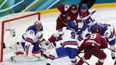 Video: Olimpisko spēļu pirmajā cīņā Latvijas hokejisti piekāpjas ASV izlasei