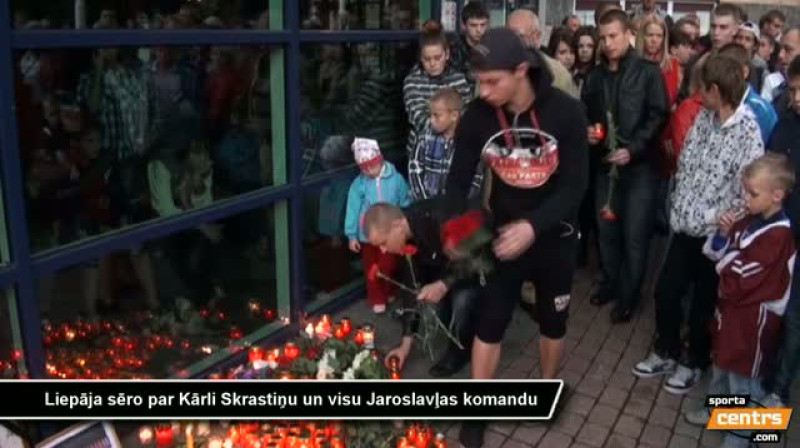 8. septembra vakarā pie Liepājas ledus halles, kurā pērn Kārlis Skrastiņš jaunajiem hokejistiem sniedza neaizmirstamas meistarklases, sapulcējās simtiem cilvēku, lai ar svecītēm un ziediem pieminētu izcilo latviešu sportistu. Netrūka asaru, izmisuma skatienu, lūkojot Kārļa Skrastiņa un viņa komandas fotogrāfijas, ap kurām dega simtiem svecīšu, kuru liesmiņas mierīgi dega, gluži vai apturot laiku, neļaujot īsti noticēt traģēdijai, kas piemeklējusi visu sporta pasauli dienu iepriekš- 7. septembrī.
