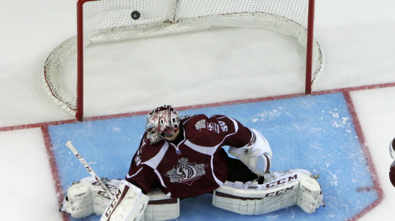 Kontinentālās hokeja līgas (KHL) spēlē šodien Rīgas "Dinamo" ar 2:3 pēcspēles metienos piekāpās Sanktpēterburgas SKA. Foto: Romāns Kokšarovs, f64.