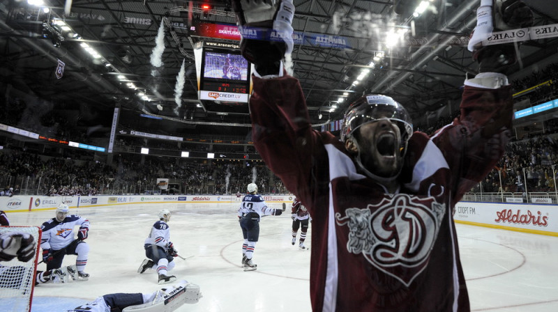 Kontinentālās hokeja līgas (KHL) spēlē šodien Rīgas "Dinamo" savā laukumā ar 2:0 pārspēja Čerepovecas "Severstal", izcīnot ceturto panākumu pēc kārtas. Foto: Romāns Kokšarovs, f64.