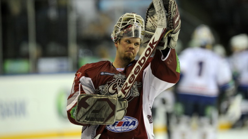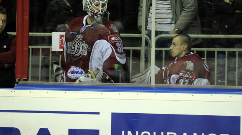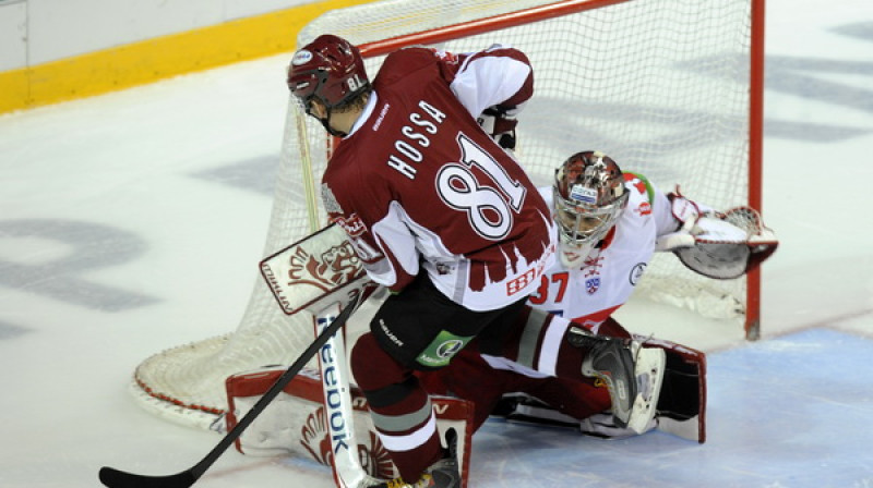 Piekto zaudējumu pēdējās septiņās spēlēs piedzīvojis Kontinentālās hokeja līgas klubs Rīgas "Dinamo", kas pirmajā spēlē 2012. gadā izglāba punktu, bet pēcspēles metienos ar 1:2 zaudēja Maskavas "Spartak". Foto: Romāns Kokšarovs, Sporta Avīze/F64.