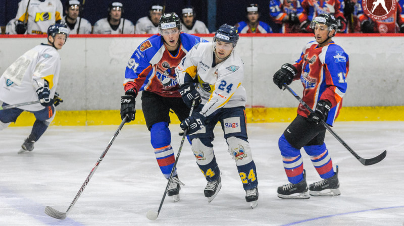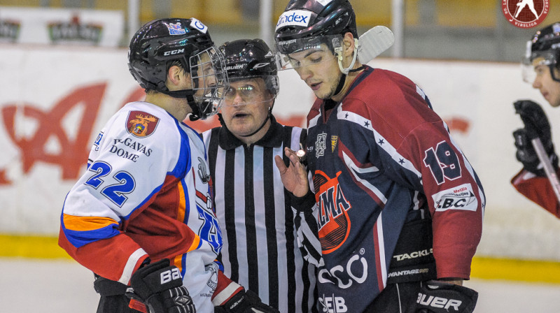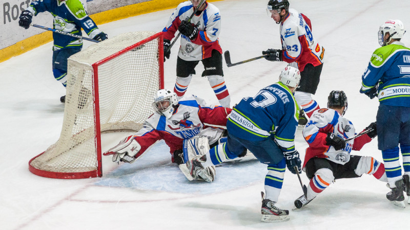 Latvijas Virslīgas hokeja čempionāta spēle starp HK "Zemgale/LLU" un HK "Liepāja". Jelgavnieki trīs reizes atspēlējas, bet rezultātā zaudē ar rezultātu 4:5. 21.11.2015., Liepājas ledus halle.