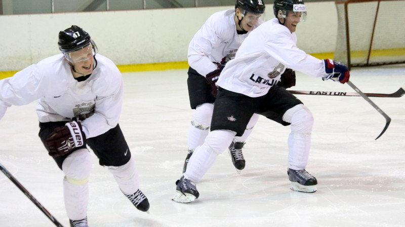Pirmdien, 2.novembrī "Volvo SC" ledus hallē Latvijas hokeja valstsvienība pulcējās uz pirmo koptreniņu pirms gaidāmā "Euro Ice Hockey Challenge" Liepājā.Foto: Mārtiņš Aiše, LHF