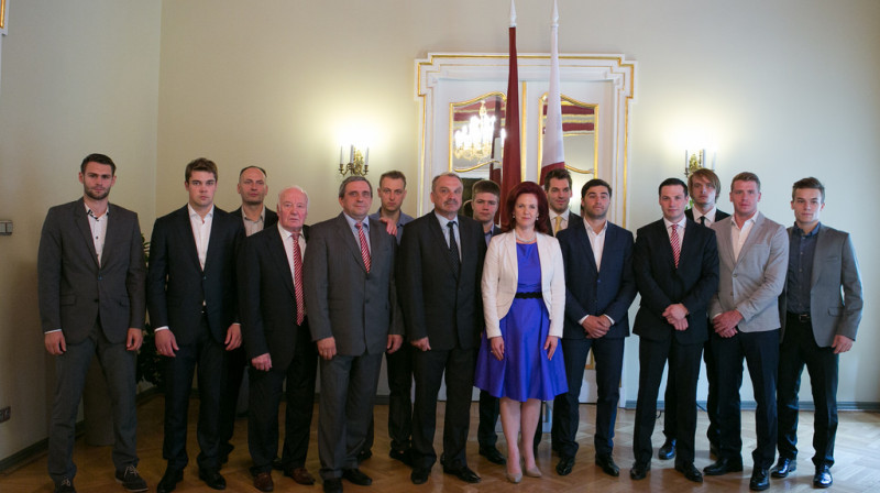 Saeimas priekšsēdētāja Solvita Āboltiņa trešdien sveica Latvijas hokeja izlasi un pateicās par labo sniegumu šī gada pasaules čempionātā un mūsu valsts vārda nešanu pasaulē, informē valsts likumdevēja preses dienests. Priekšsēdētāja hokejistiem teica paldies par komandas spēli un cīņas sparu, uzsverot, ka šī gada čempionātā Latvijas izlase iedvesmoja gan sportistus, gan hokeja līdzjutējus un ļāva lepoties ar mūsu valsti. Vēlot panākumus un veiksmi nākamajās sacensībās, Āboltiņa arī pateicās par atbalstu sportistu ģimenēm, treneriem, ārstiem un hokeja federācijai.Saeimas namā mūsu hokeja izlase saņēma atzinības rakstus par dalību šī gada pasaules čempionātā hokejā. Latvijas hokeja izlase šī gada pasaules čempionātā ierindojās 11.vietā, spraigā cīņā uzvarot Somijas, ASV un Kazahstānas valstsvienības. Starptautiskās hokeja federācijas (IIHF) rangā izlase šogad pakāpusies par vienu pozīciju un ieņem devīto vietu. Mūsu hokejistus šī gada pasaules hokeja čempionātā Minskā atbalstīja tūkstošiem Latvijas līdzjutēju. Mūsu hokeja valstsvienība aizvadīja savu 18.pasaules čempionātu elites divīzijā.Foto: Ernests Dinka, saeima.lv