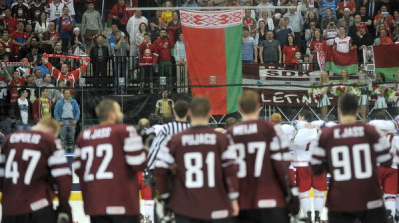 Pirmajā trešdaļā ielaižot divus vārtus 33 sekunžu laikā, 2014. gada pasaules čempionātā hokejā trešo zaudējumu piedzīvojusi Latvijas valstsvienība, kas ar 1:3 piekāpās mājinieces Baltkrievijas priekšā. Foto: Romāns Kokšarovs, F64.