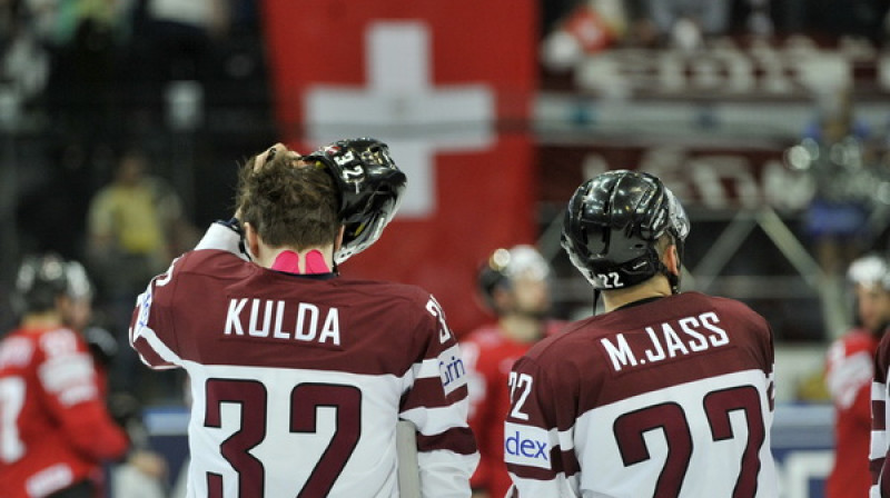 Latvijas hokeja valstsvienība neiekļuva pasaules čempionāta ceturtdaļfinālā, priekšsacīkšu pēdējā spēlē ar 2:3 zaudējot pagājušā gada pasaules vicečempionei Šveicei. Foto: Romāns Kokšarovs, F64.