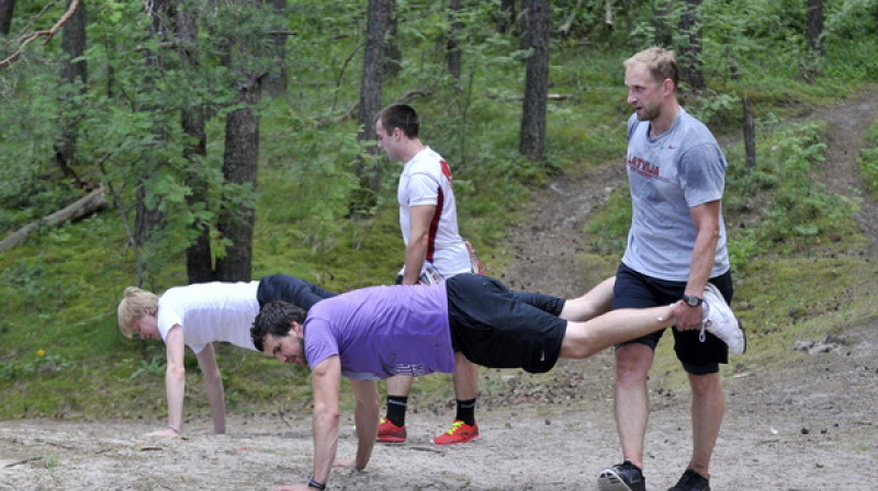 Rīgas ''Dimano'' spēlētāji sāk gatavoties jaunajai sezonai un aizvadījuši pirmo sauso treniņu Jūrmalā. Foto: Romāns Kokšarovs, f64.