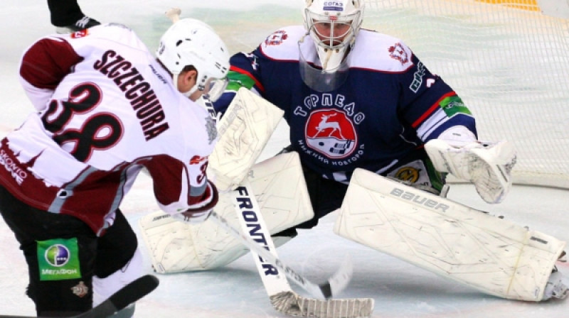 Cerības kausa kvalifikācijas izbraukuma mača pamatlaikā Rīgas "Dinamo" sestdien piekāpās Ņižņijnovgorodas "Torpedo" (2:4). Pirmajā mačā Rīgā mūsējie uzvarēja (4:1), tāpēc tagad tika spēlēts izšķirošais papildlaiks, un tajā rīdzinieku uzbrucējs Pols Šekura guva uzvaras vārtus. Mūsu komanda kvalificējās nākamajai kārtai. Piedāvājam mača fotogrāfijas no Ņižņijnovgorodas.Foto: Aleksandrs Čurbanovs, hctorpedo.ru.