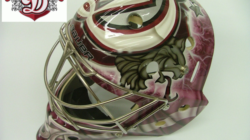 Rīgas Dinamo otrā vārtsarga Māra Jučera jaunā maska.