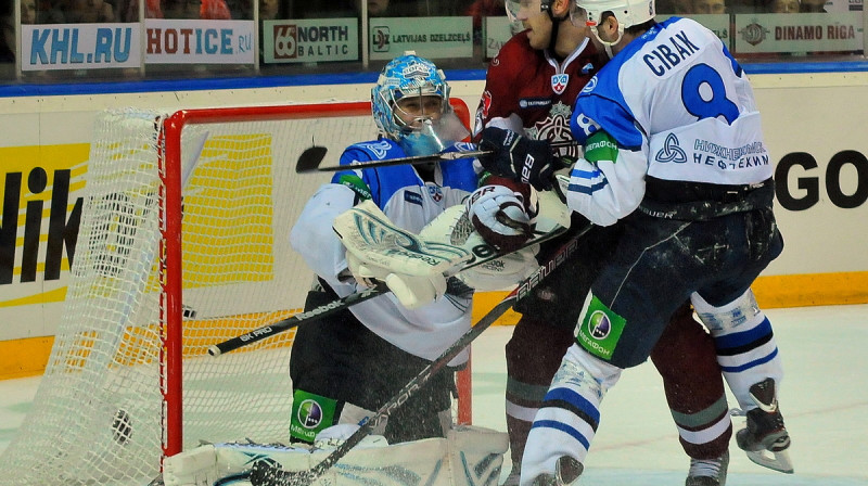 Zaudējumu Kontinentālās hokeja līgas regulārās sezonas spēlē piedzīvojis Rīgas "Dinamo", kas ar 1:3 piekāpās divkārtējai Gagarina kausa uzvarētājai Kazaņas "Ak Bars". Foto: Romāns Kokšarovs, Sporta Avīze/F64.