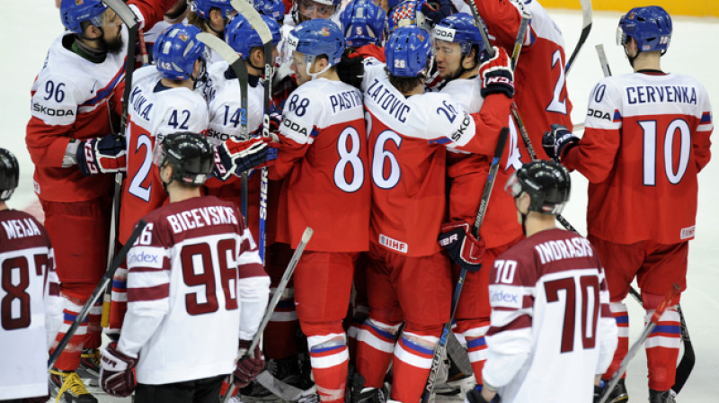 Hokeja izlase pēcspēles metienu sērijā zaudē čehiem