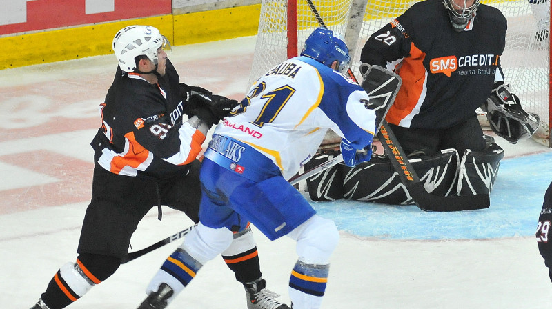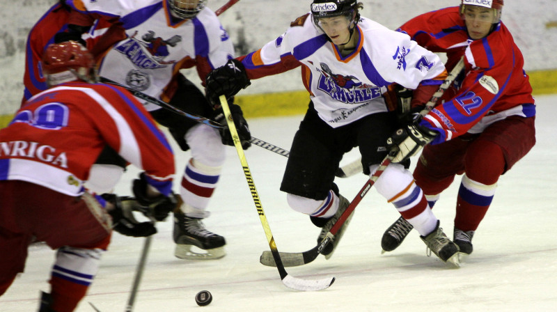 Pie trešā zaudējuma sezonā svētdien tika viena no Latvijas atklātā hokeja čempionāta (LAČ) favorītiem "SMS Credit", kas savā laukumā ar rezultātu 4:5 atzina Daugavpils "Latgale" pārākumu.Foto: Romualds Vambuts, Sportacentrs.com