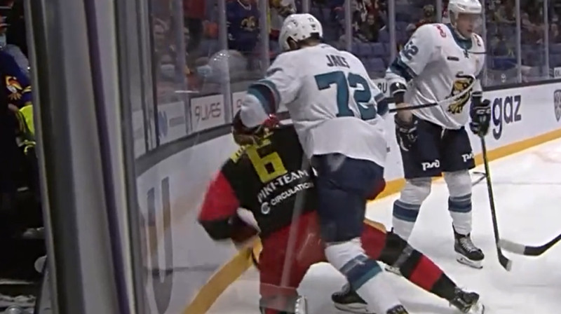 Kontinentālās hokeja līgas (KHL) mačā latviešu aizsarga pārstāvētais Krasnodaras novada "Sochi" šovakar viesos zaudēja Helsinku "Jokerit" - 2:4. Kādā epizodē, nākot palīgā komandas biedram, Jānis Jaks (183cm, 86kg) spēcīgi pagrūda 10 centimetrus garāko un 10 kilogramus smagāko somu uzbrucēju Jesi Joensū un iesaistījās asumos, par ko tika sodīts ar divu minūšu noraidījumu. Video: KHL
