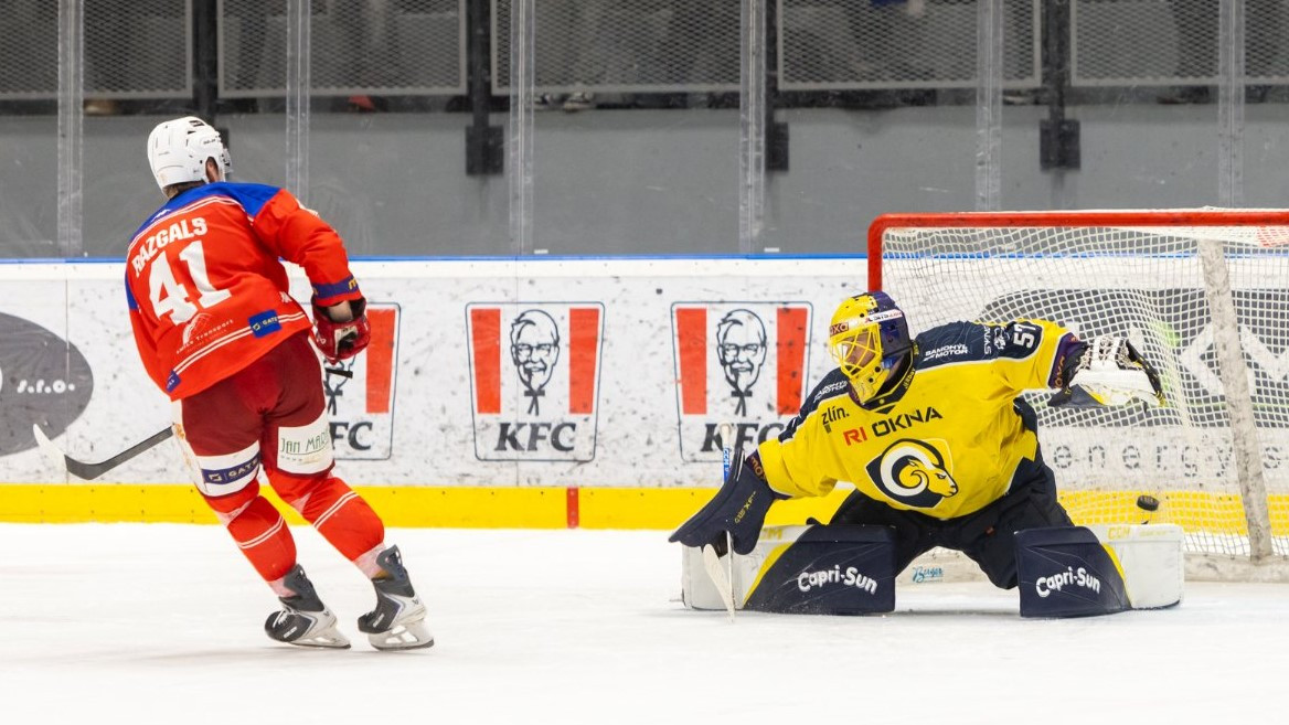 Čehijas otrajā spēcīgākajā līgā Frenks Razgals (46 spēlēs 17+11) svētdien bija vienīgais no deviņiem hokejistiem, kurš bullīšu sērijā pārspēja vārtsargu, tādējādi kaldinot Porubas panākumu (4:3) pār Zlīnu.