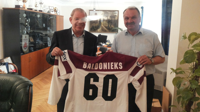 Svētdien Latvijas hokeja izlase viesojās Latvijas vēstniecībā Prāgā, kur pieņemšanu rīkoja valsts vēstnieks Čehijā Alberts Sarkanis.