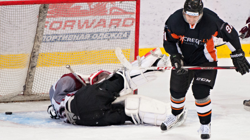 Sestdien "Volvo SC" ledus hallē pieredzējušie "Ozolnieki/MONARCH" hokejisti ar rezultātu 7:2 uzveica HS "Rīga/Prizma2".Foto: Mārtiņš Aiše