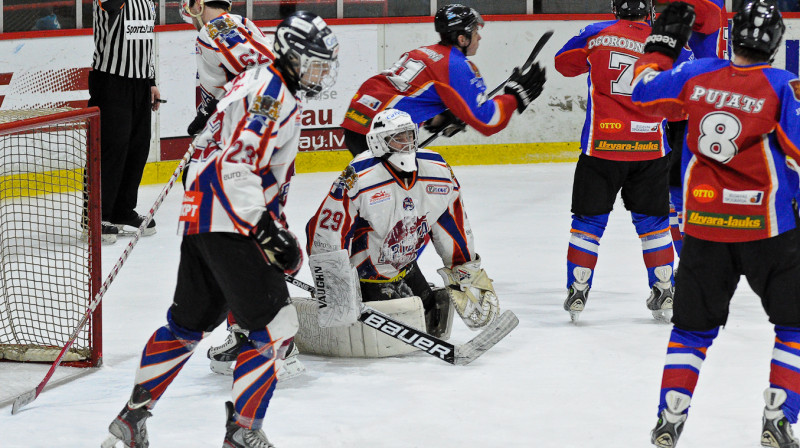 Trešdien, Jelgavā HK Zemgale/JLSS komanda ar rezultātu 5:4 pēcspēles metienos uzveica pašreizējos čempionus Liepājas Metalurgs2 hokejistus.Foto: Ruslans Antropovs, rusantro.com