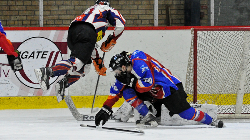 Trešdien "Volvo SC" ledus hallē sacentās čempionāta divas vājākās komandas - HS "Rīga/Prizma II" un SK "Rīga96". Ar rezultātu 5:4 pēcspēles metienos pārāka izrādījās HS "Rīga/Prizma II" vienība.Foto: Mārtiņš Aiše.