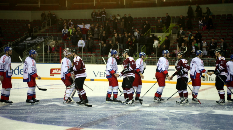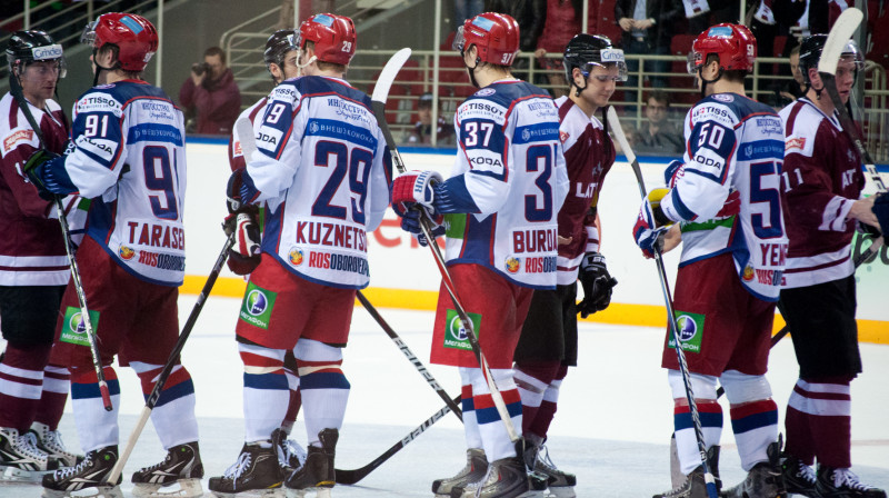 "Euro Hockey Challenge" turnīra ietvaros šovakar Latvijas valstsvienības hokejisti "Arēnā Rīga" ar 1:2 zaudēja Krievijas izlasei.Foto: Vladislavs Proškins