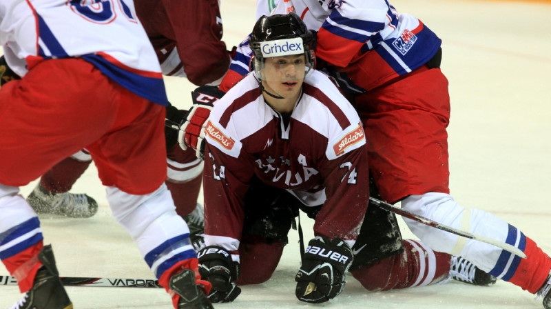 Otro zaudējumu pasaules čempionātā piedzīvojusi Latvijas valstsvienība, kas ar rezultātu 1:3 piekāpās Čehijas izlasei. Foto: Romāns Kokšarovs, Sporta Avīze/F64 Photo Agency.
