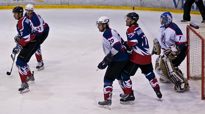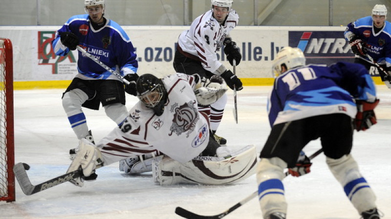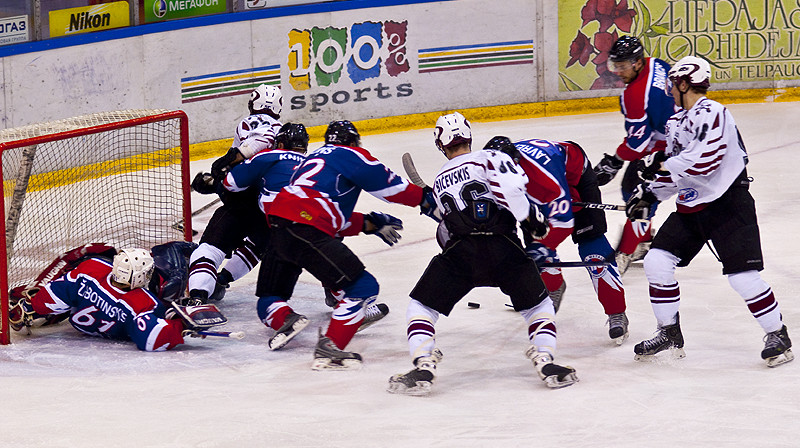 Latvijas Atklātā hokeja čempionāta finālsērijas pirmajā mačā otrdien savās mājās pagājušās sezonas čempionvienība "Liepājas Metalurgs" piekāpās "Dinamo/Juniors" komandai ar rezultātu 3:4.Foto: Aigars Prūsis, Sportacentrs.com