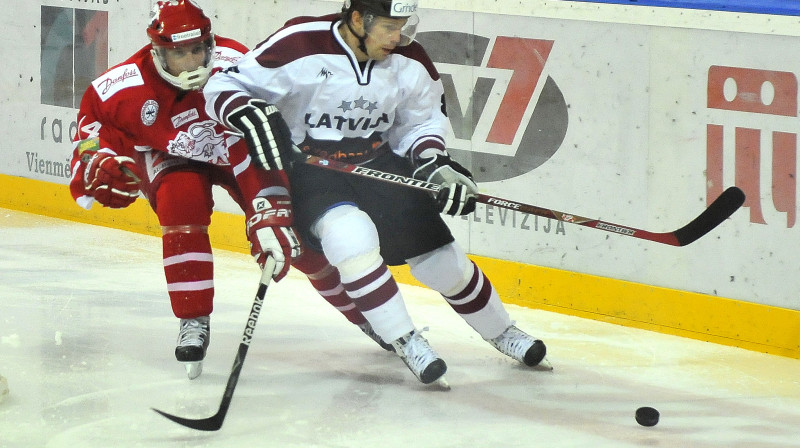 Šovakar pārbaudes spēlē hokejā Latvijas izlase pārbaudes spēlē ar 5:3 apspēlēja Dānijas valstsvienību.Foto: Romualds Vambuts, Sportacentrs.com