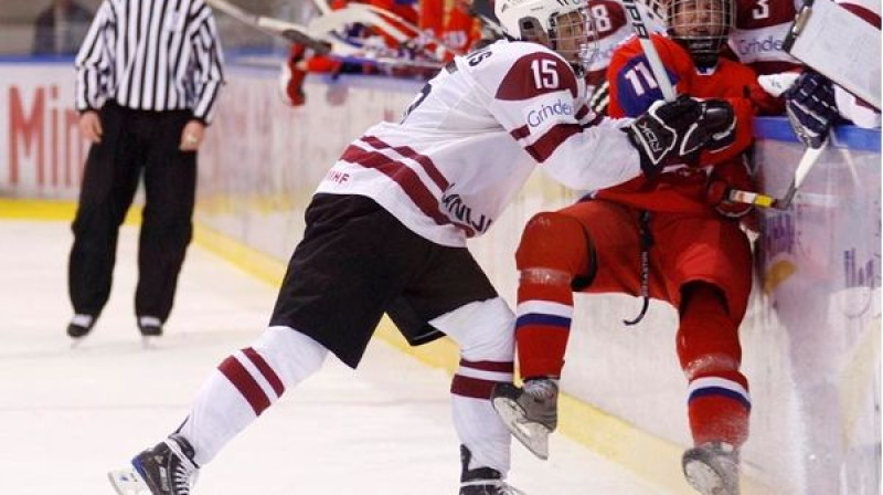 Šodien pasaules jauniešu hokeja čempionātā (U18) Elites divīzijā trešo zaudējumu cieta Latvijas hokejisti, kas ar 4:5 piekāpās Čehijas vienaudžiem. Divus vārtus guva uzbrucējs Māris Diļevka.Foto: iihf.com