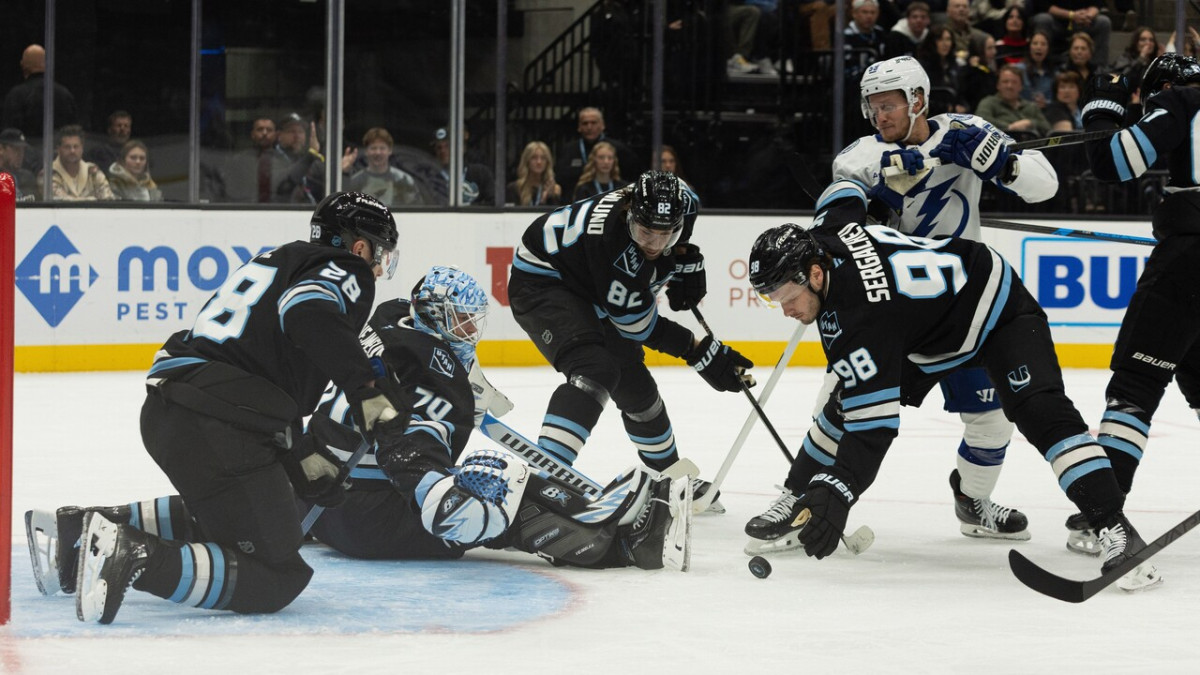 Nacionālās hokeja līgas (NHL) sezonas pirmajās septiņās spēlēs sešus zaudējumus cietusī Tampabejas "Lightning" izcīnīja piekto uzvaru pēc kārtas, nelielas izbraukumu sērijas ievadā šovakar ar 4:2 pārspējot Jūtu.