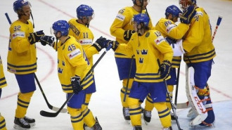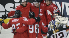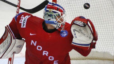6': Kaspars Daugaviņš atstāj ripu Miķelim Rēdliham, kurš pēc virāžas izdara metienu no labā iemetiena apļa, taču ripa līdz Kevina Lalanda sargātajam cietoksnim nenonāk.