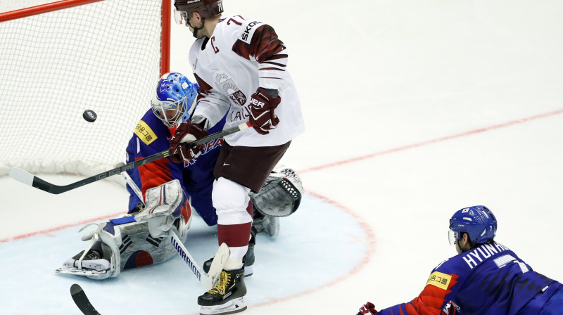 Latvijas hokeja izlase centīsies atgriezties uz uzvaru takas, mērojoties spēkiem ar elites divīzijas debitanti Dienvidkoreju. Pēc sakāves iepriekšējā mačā pret Somiju Latvijas izlases galvenais treneris Bobs Hārtlijs treniņā izmainīja uzbrucēju virknējumus, tomēr pieteikumā izmaiņu nav, atskaitot to, ka vārtus atkal sargās Merzļikins.