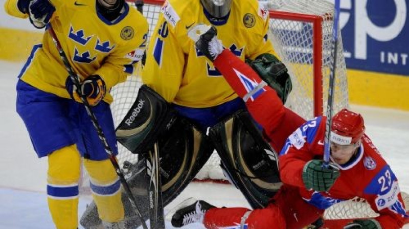 Krievijas valstsvienība bez zaudējumiem turpina dalību pasaules hokeja čempionātā Šveicē, kur ceturtdienas vakarā E grupas mačā ar rezultātu 6:5 papildlaikā pārspēja Zviedrijas izlasi.