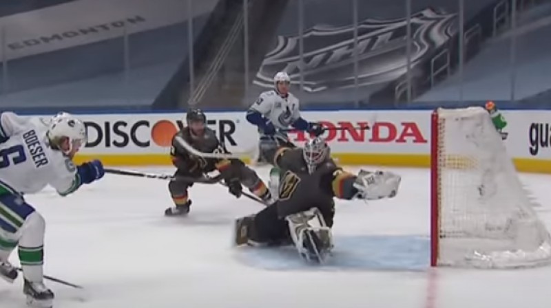 Ziemeļamerikas medijs "Sportsnet" apkopojis labākās epizodes NHL izslēgšanas spēlēs. Pirmo vietu izpelnījies Lasvegasas "Golden Knights" zviedru vārtsargs Robins Lēners. Video: SN / NHL