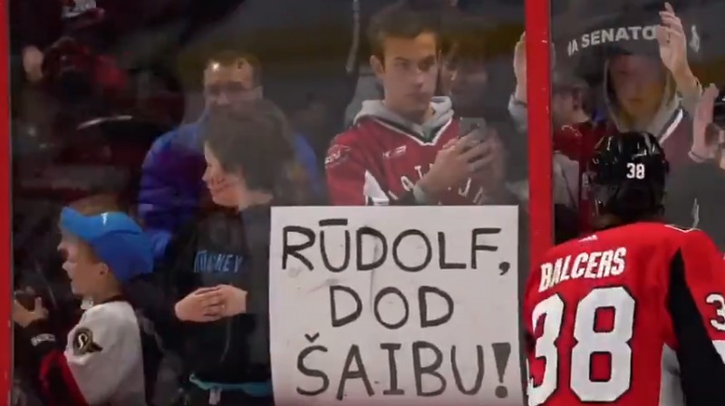 Aizvadītajā naktī Otavas "Senators" spēlētājs Rūdolfs Balcers pēc ilgāka pārtraukuma atgriezās Nacionālās hokeja līgas (NHL) mačā. Latviešu hokejistu atbalstīja arī līdzjutēji ar plakātu "Rūdolf, dod šaibu!" Minētais pieprasījums tika izpildīts.
