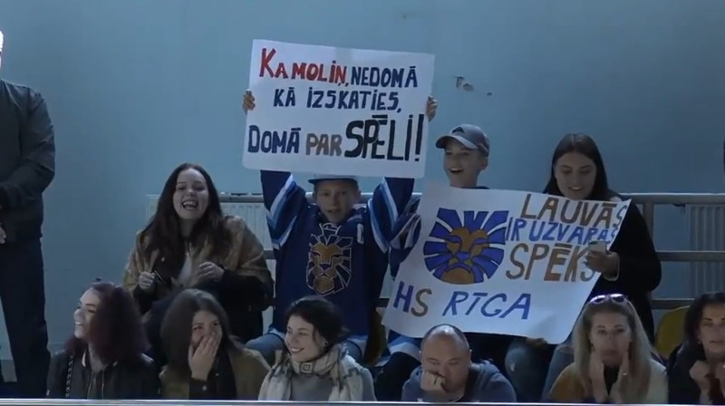 Latvijas hokeja čempionāta "Optibet" līgas kluba "Rīga" līdzjutēji sestdien notikušajā spēlē pret "Kurbadu" izcēlās ar savas komandas aizsargam Edgaram Kamoliņam veltītu plakātu, kas vēstīja: "Kamoliņ, nedomā, kā izskaties, domā par spēli!"Video: Optibet Hokeja Līga YouTube kanāls