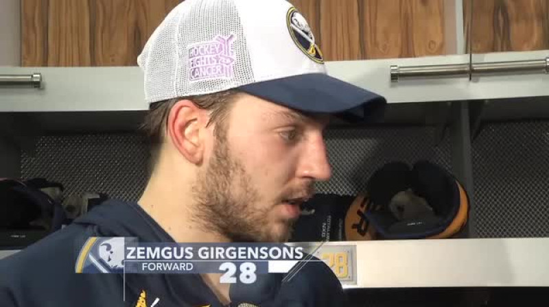 Zemgus Girgensons guvis sezonas ceturto punktu Nacionālajās hokeja līgā (NHL), ar rezultatīvu piespēli palīdzot Bufalo „Sabres” izcīnīt uzvaru pār Detroitas „Red Wings” (3:2 pēcspēles metienos), turklāt tieši viņš realizēja izšķirošo bullīti.