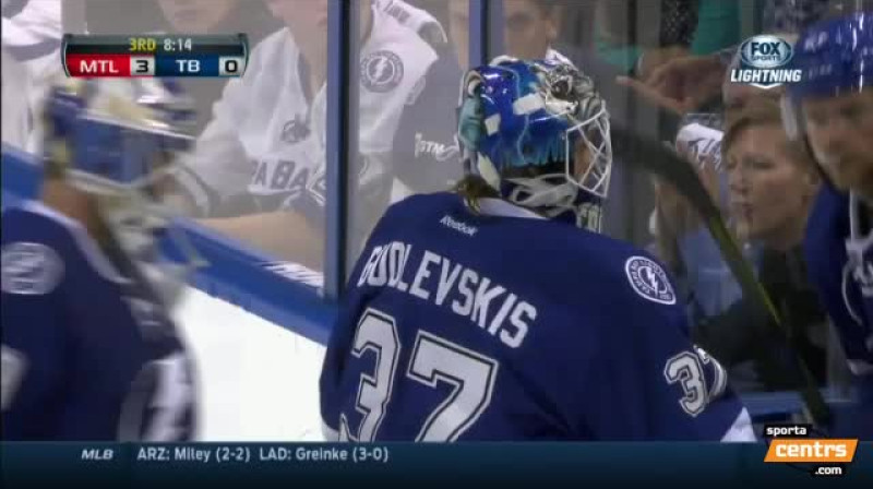 Sezona noslēgusies Nacionālās hokeja līgas klubam Tampabejas "Lightning", kas pirmās kārtas ceturtajā mačā izbraukumā ar 3:4 atzina Monreālas "Canadiens" pārākumu, piedzīvojot ceturto neveiksmi pēc kārtas (0-4). 21 gadu vecais Kristers Gudļevskis zaudētāju vārtos stājās 26. minūtē, atvairot 16 metienus un vienīgos vārtus ielaižot mazākumā 43 sekundes pirms pamatlaika noslēguma.